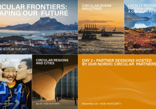 15/10/2025Nordic Circular Summit 2025 — Circular Frontiers: Shaping our futureThe Nordic Circular Summit 2025 is co-hosted by Nordic Circular Hotspot and Nordic Innovation, in collaboration with Nal...